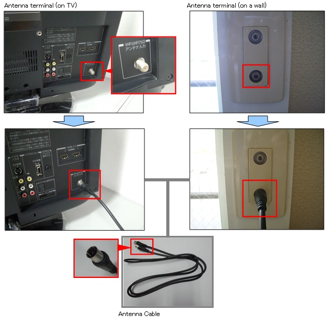 ① Please check if coaxial cable (antenna cable) is properly connected by unplugging and plugging it into Antenna sockets.