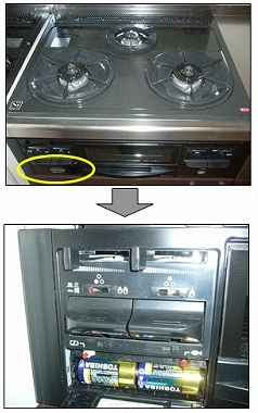※Some models, such as the Paloma PD-20S etc. the batteries are inside the top cover of the stove.