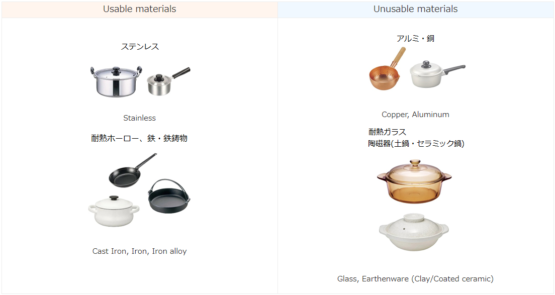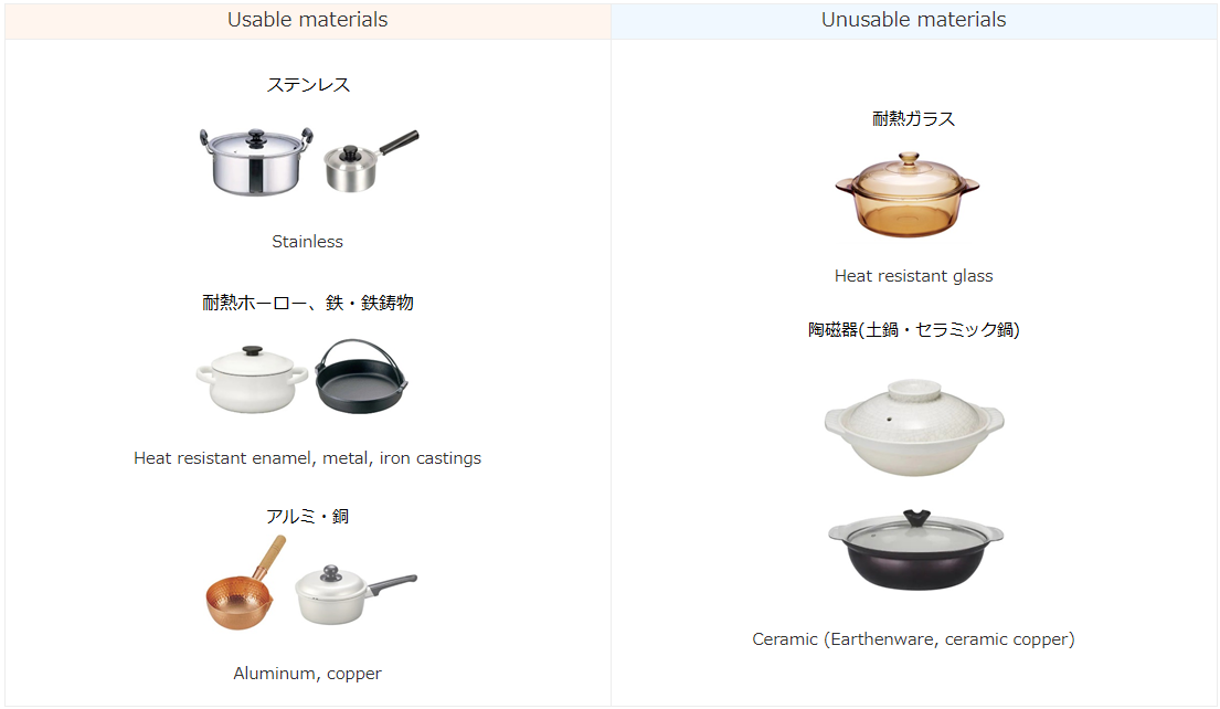 When purchasing new pot and pans, look for the 「IH」 mark, as it will be certified by the Product Safety Corporate Association.