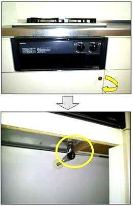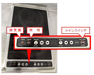 ● For the models shown below, you must turn on the stove power first to be able to operate the buttons for the exhauster fan or light.