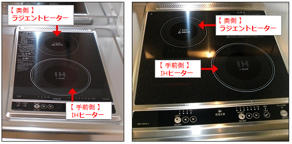 Some 2 burners type stove models like the ones on the pictures presented below, the front burner will be an IH heater while the rear burner will be a radiation heater.