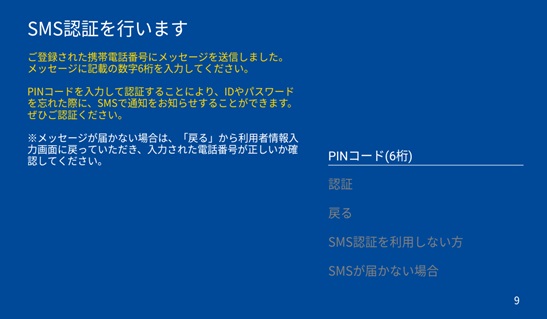 ⑭ If you have registered a mobile phone number(starting with 070,080,090) in ⑬, a SMS message with the PIN code(6 digits) will be sent in your mobile phone.