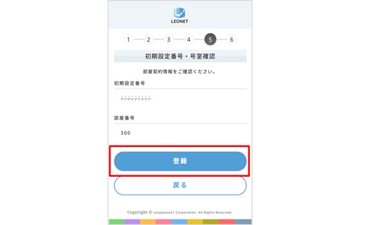 ⑮ This is the confirmation screen of the room contract information. Check the initial configuration number and your room number are correct, and select "Register".