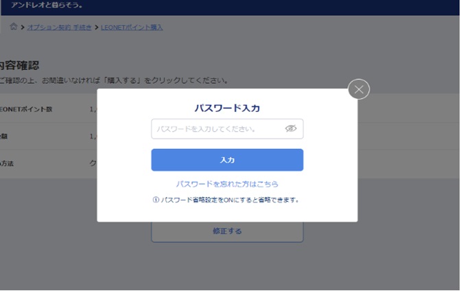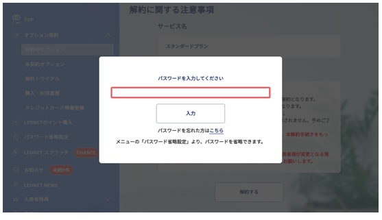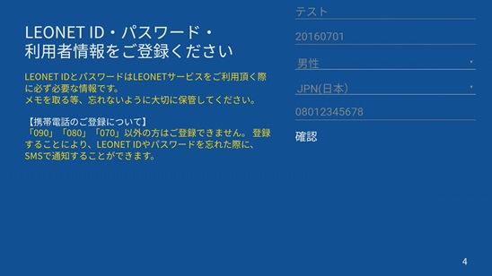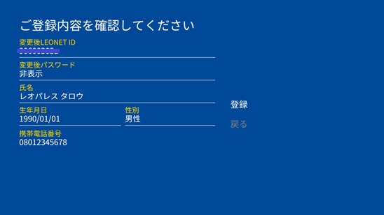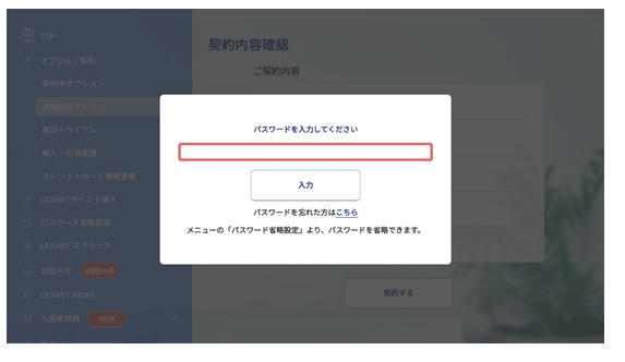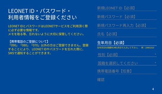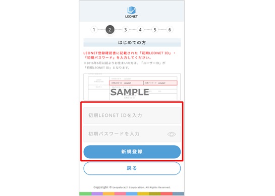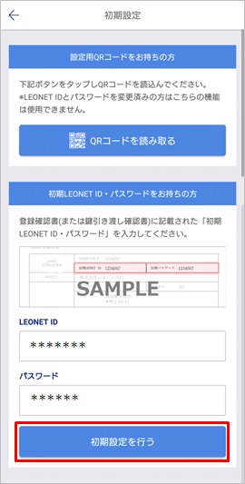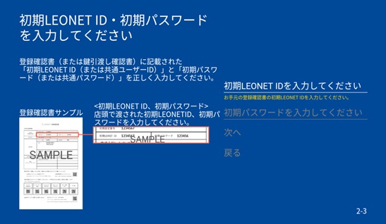 If the "LEONET ID/ password" has not been changed, enter the "LEONET ID/ Password" described in the "Registration confirmation" or "Key delivery confirmation".