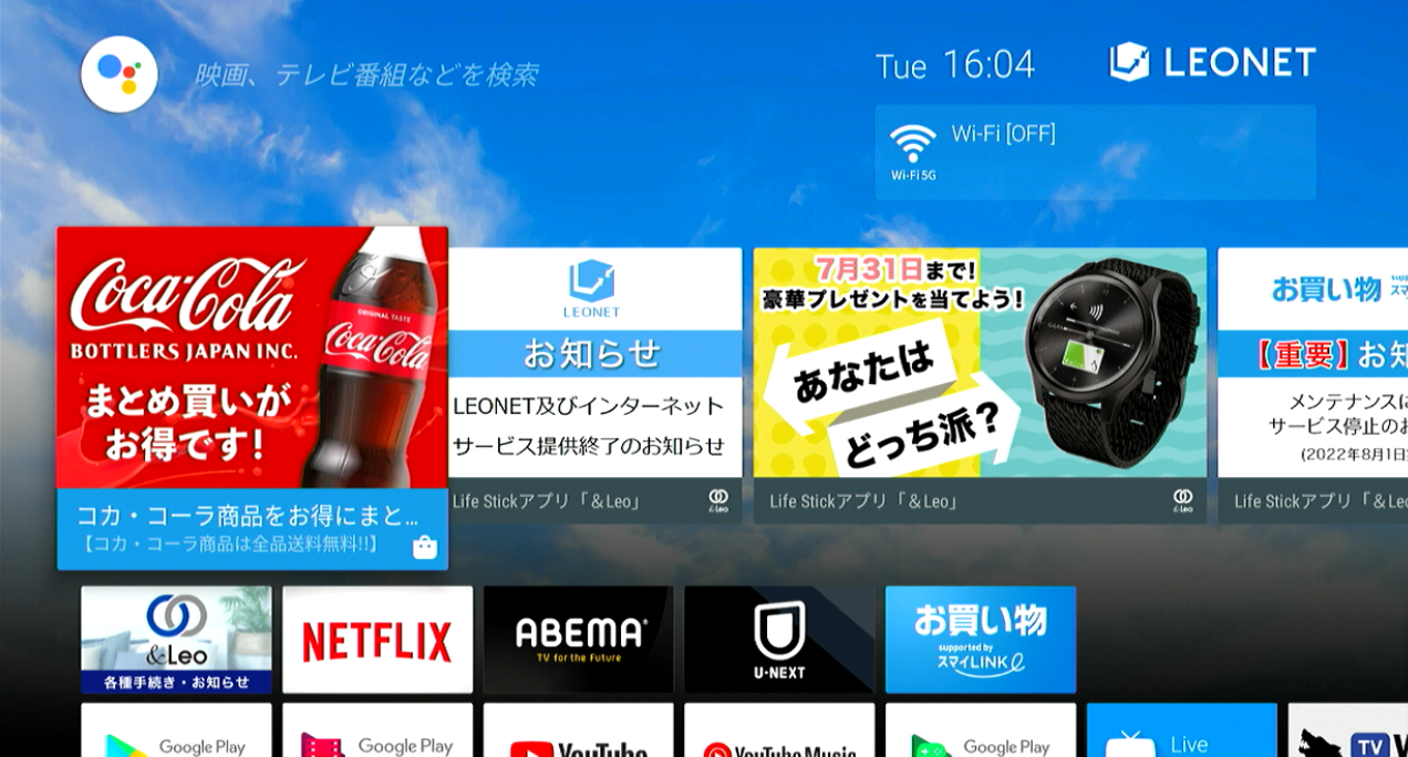 If you bring your own TV, you can use the above services by performing the initial settings on your TV.