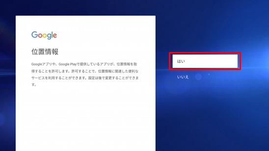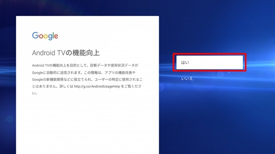 ⑥ To improve the function of Android TV, confirmation to be allowed to send the usage status of the device to Google. Either one is okay to select.