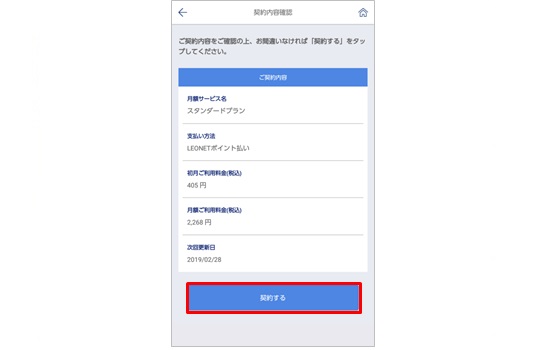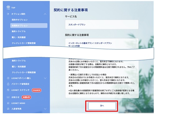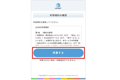 (8)The confirmation screen of the LEONET terms of service will be displayed.