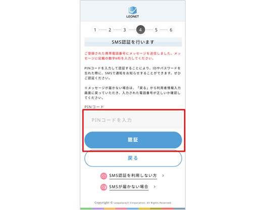⑥ If you register your mobile phone number(starting with 070, 080, 090) in ⑤, a PIN code(6 digits) will be sent to the SMS of the registered mobile phone.