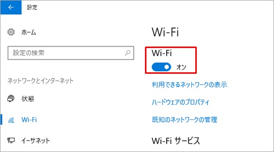 ②If Wi-Fi is off, select 「Wi-Fi を入にする」(turn on Wi-Fi) from the menu.