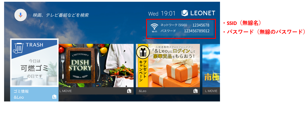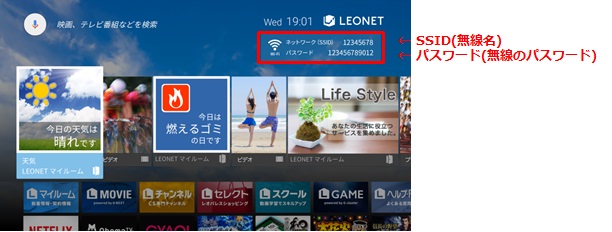 If you have an contract, "SSID"(WI-FI) and "パスワード"(password) will be displayed on the right top corner in the screen when you complete the initial settings.