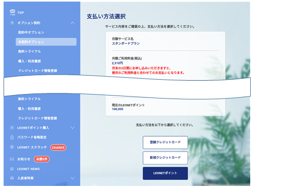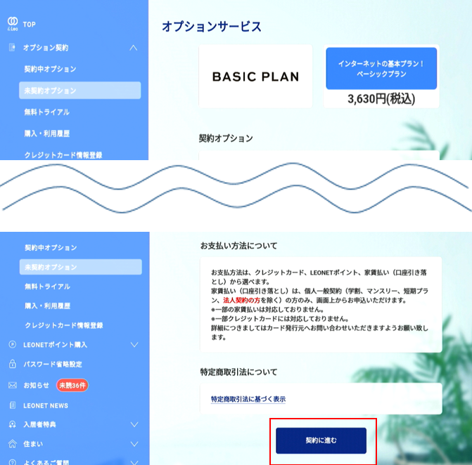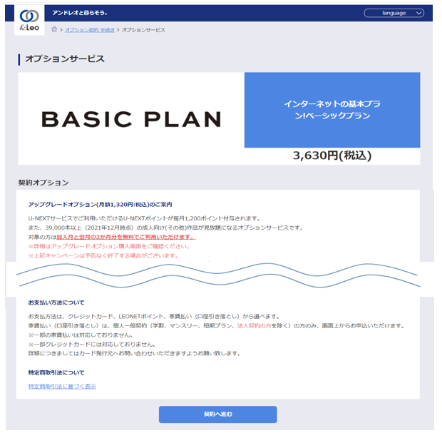 ※The Light Plan can only be used by paying along the rent of the apartment and the contract must be made at the LeoPalace Center branch.