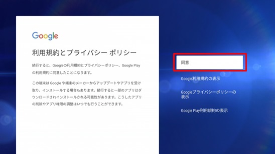 ⑥To improve the function of Android TV, confirmation to be allowed to send the usage status of the device to Google. Either one is okay to select.