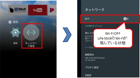 If it is ON, the Lifestick's Wi-Fi cannot be turned on.