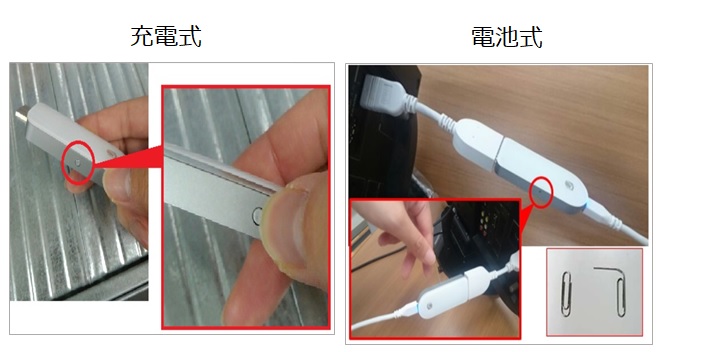 ・・・Press and hold the small hole on the side of the Lifestick with the tip of a paper clip for 5 seconds.