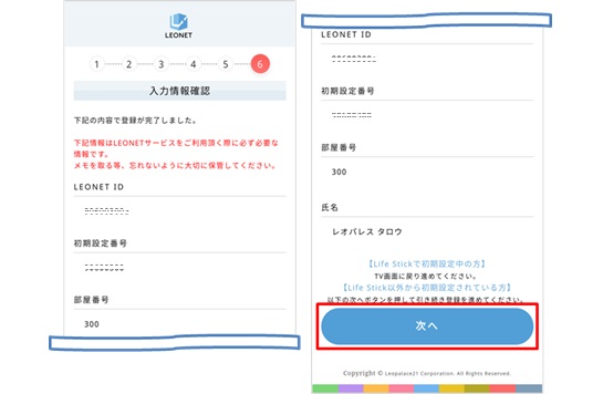 If you have changed to any "LEONET ID/ password" from the initial settings of Lifestick or from the &Leo app/ resident-only website "&Leo", enter the changed "LEONET ID/ password".