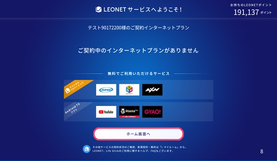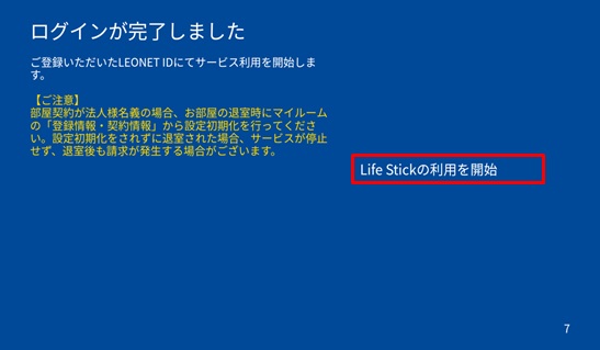 ※Wireless Internet using Lifestick can be used without displaying the authentication screen for entering LEONET ID and password.