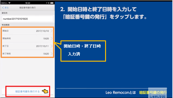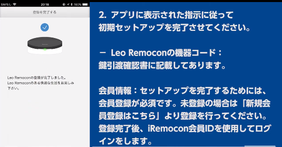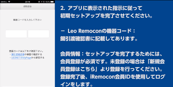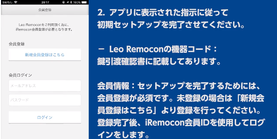 ※The device code is written on the document that is given to the tenant along with the keys of the room.