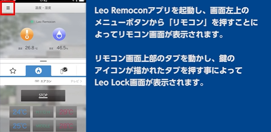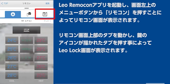 ※Check " Leo Remocon App - Smartphone application " for information on how to manage the settings through the app.
