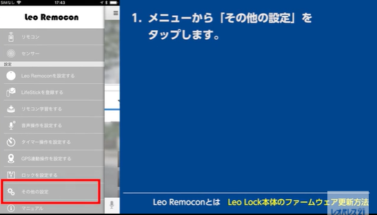 ① On the LeoRemocon menu, select "General Settings"「その他の設定」.