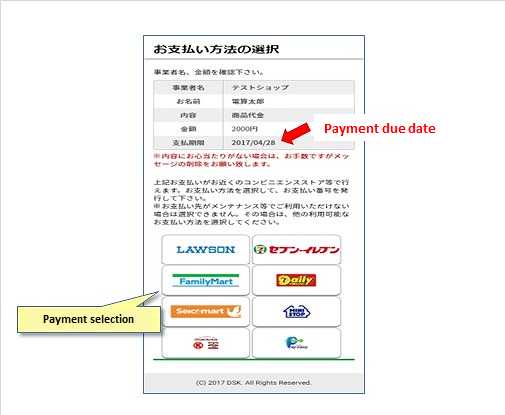 Select convenience store※Please pay within the displayed payment due date.