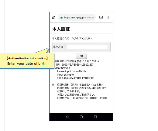 convenience store from the URL link in the SMS text received on the mobile phone