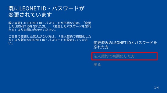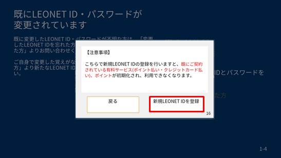※Please note that if the LEONET ID and password have been changed, performing the following operation (logging into LEONET) will delete any retained LEONET points and any information related to currently contracted optional services that you have been using.