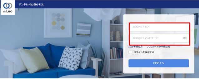 ① Enter your LEONET ID and password to log in to the tenants exclusive Web site「&Leo」.