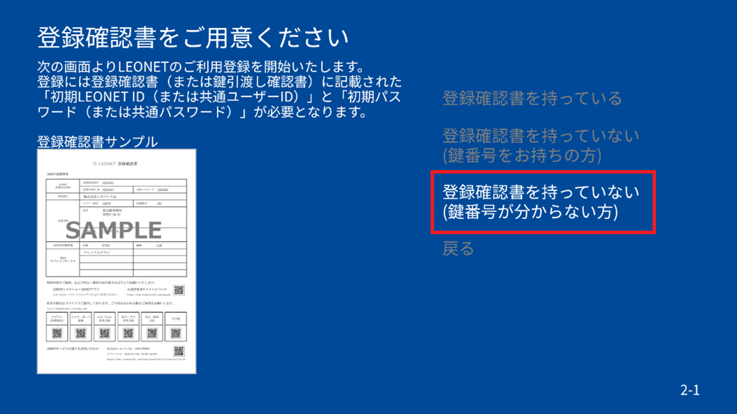 2) Once you proceed with "Language Settings" and "Agree to Terms of Use," the following screen will be displayed: Select "Initial Setup for First-time LEONET ID Configuration."
