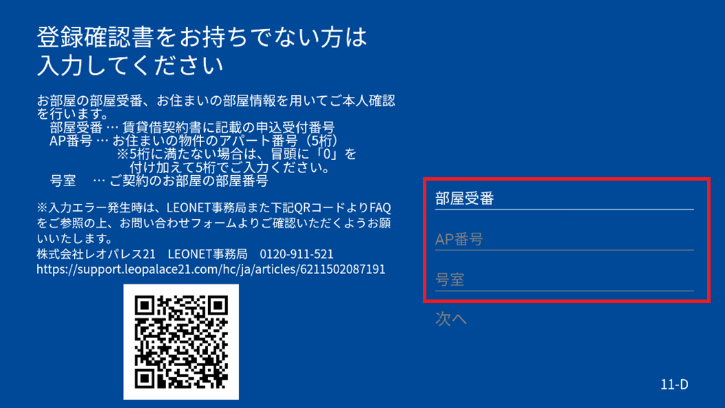 4) Enter the "Application Reception Number (Room Acceptance Number)," "AP Number," and "Room Number."