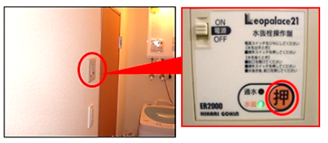 ※Electric water drain control panels are installed on walls mainly around bathrooms, toilets and washing machines in some properties in Hokkaido, Aomori, Akita, Iwate, Miyagi, Yamagata and Fukushima prefectures.