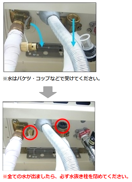 ※Leave the drain valve open for about 15 minutes and the water will drain out completely.