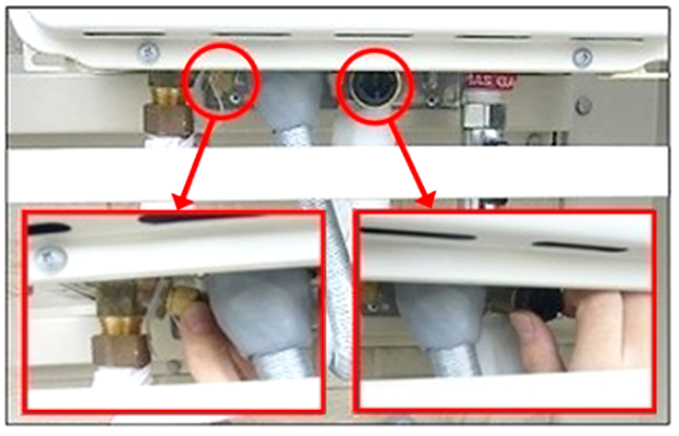 1.Fully open the hot water faucets in the kitchen and bathroom and make sure that the hot water is turned off.